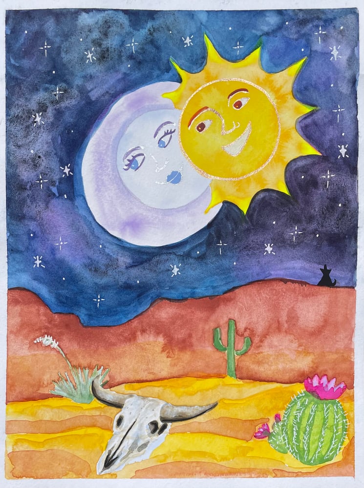 This is a set of two watercolor illustrations that make up the full page spread that appeared in the book.